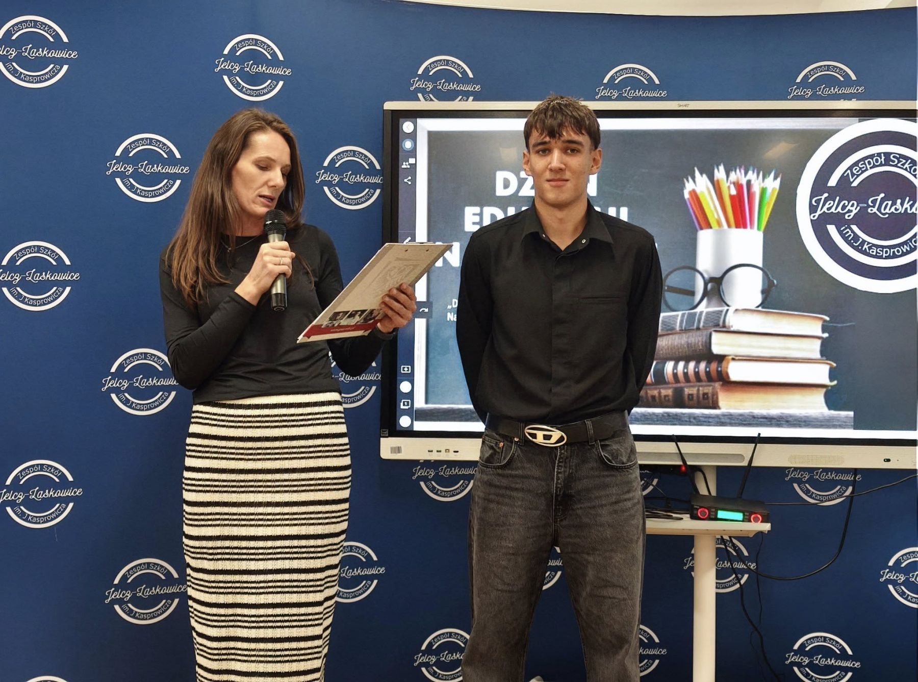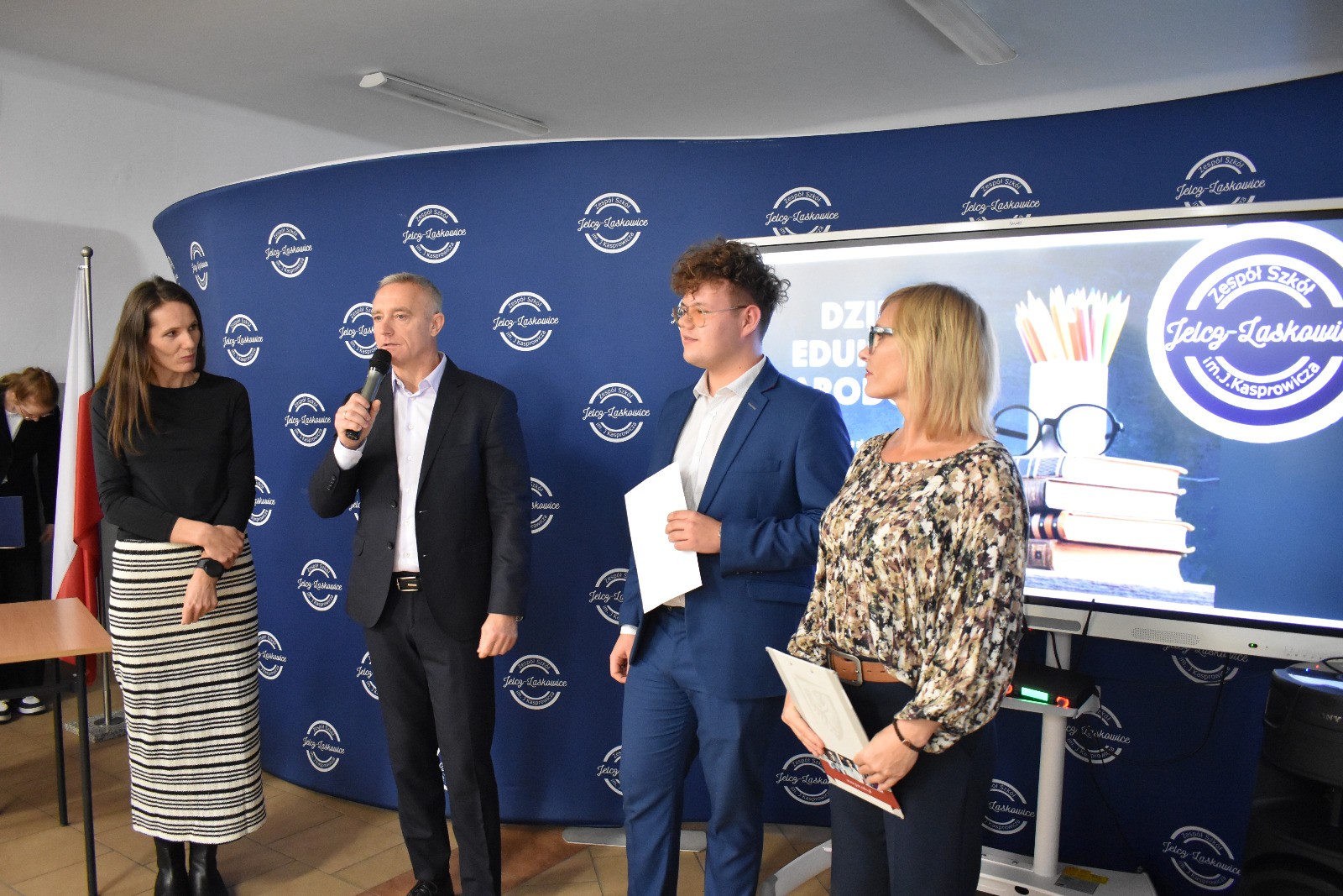 W dalszej części uroczystości głos zabrał Dyrektor szkoły. W swoim przemówieniu wyraził głęboką wdzięczność wszystkim nauczycielom i pracownikom oświaty za ich codzienny trud, poświęcenie i zaangażowanie w proces kształcenia oraz wychowania młodzieży. Podkreślił również, że praca nauczyciela to nie tylko przekazywanie wiedzy, ale również kształtowanie postaw, wspieranie w rozwoju oraz budowanie relacji opartych na szacunku i zaufaniu.