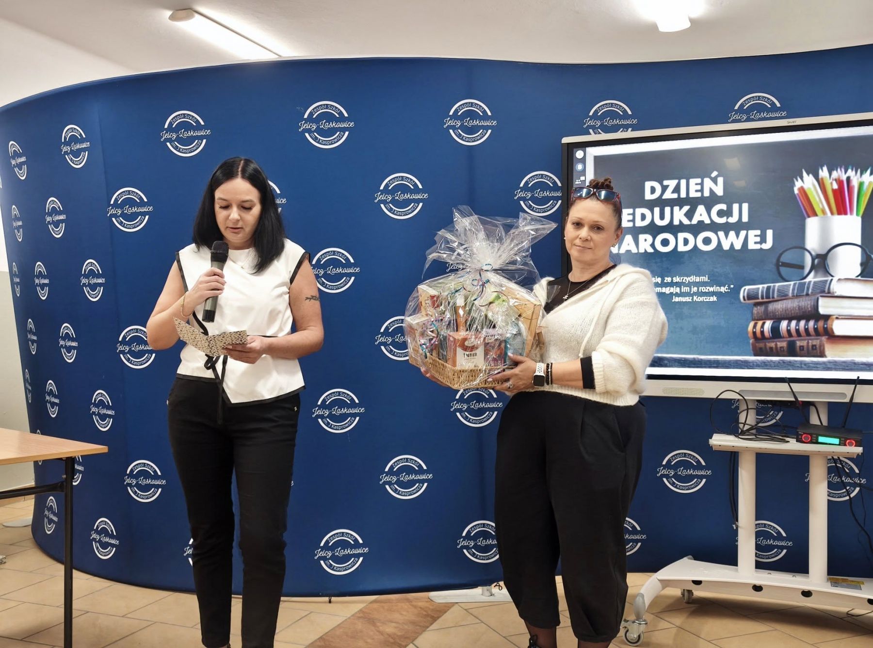 Słowa uznania dla pedagogów padły również z ust przewodniczącej Rady Rodziców – pani Anny Bogusz. Przedstawiciele Rady Rodziców, w geście podziękowania za codzienny trud i zaangażowanie nauczycieli, wręczyli – na ręce Dyrektora – kosz pełen aromatycznych herbat, kaw i słodkości.