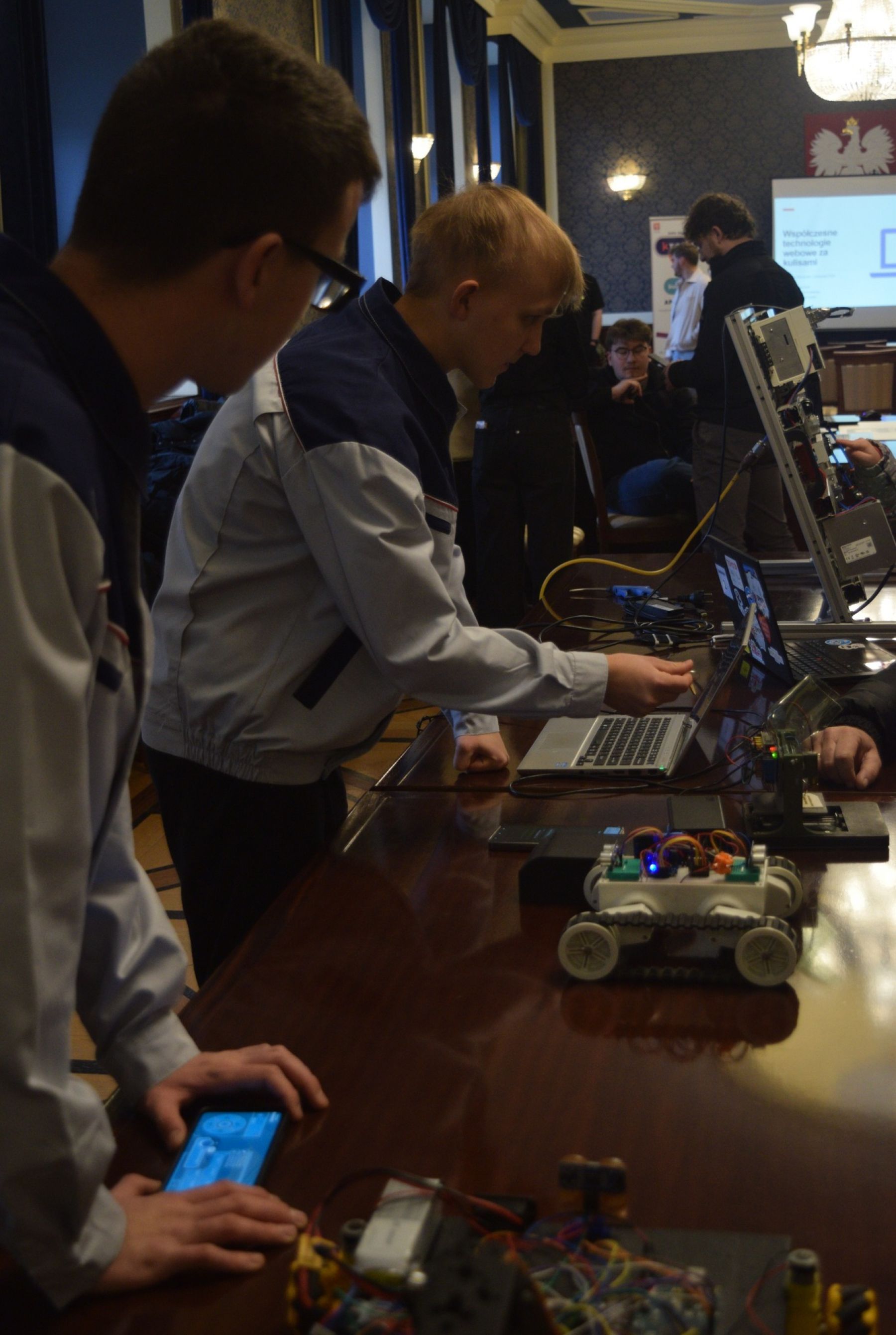 Nasze stanowisko znalazło się w gronie kół naukowych studentów, którzy prezentowali m.in. bolid Formuły 1, projekty związane z tworzeniem aplikacji webowych oraz produkcją gier komputerowych. W tak inspirującym otoczeniu nasi uczniowie przedstawili roboty własnej konstrukcji, wzbudzając duże zainteresowanie odwiedzających.