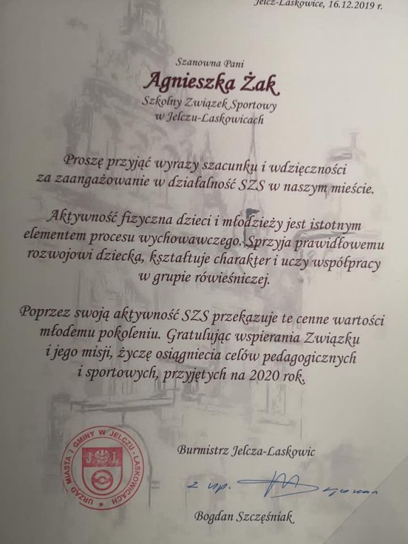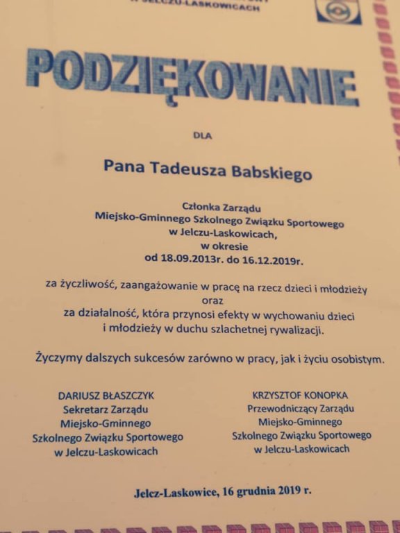 - 2019/2020 - Podziękowania dla Zespołu Szkół im. J. Kasprowicza