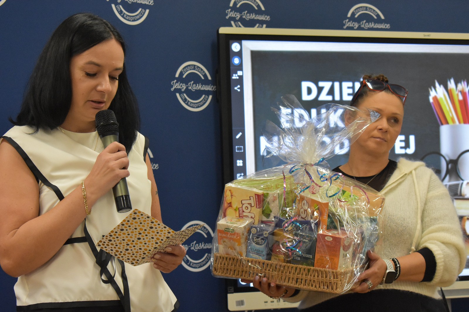 Słowa uznania dla pedagogów padły również z ust przewodniczącej Rady Rodziców – pani Anny Bogusz. Przedstawiciele Rady Rodziców, w geście podziękowania za codzienny trud i zaangażowanie nauczycieli, wręczyli – na ręce Dyrektora – kosz pełen aromatycznych herbat, kaw i słodkości.