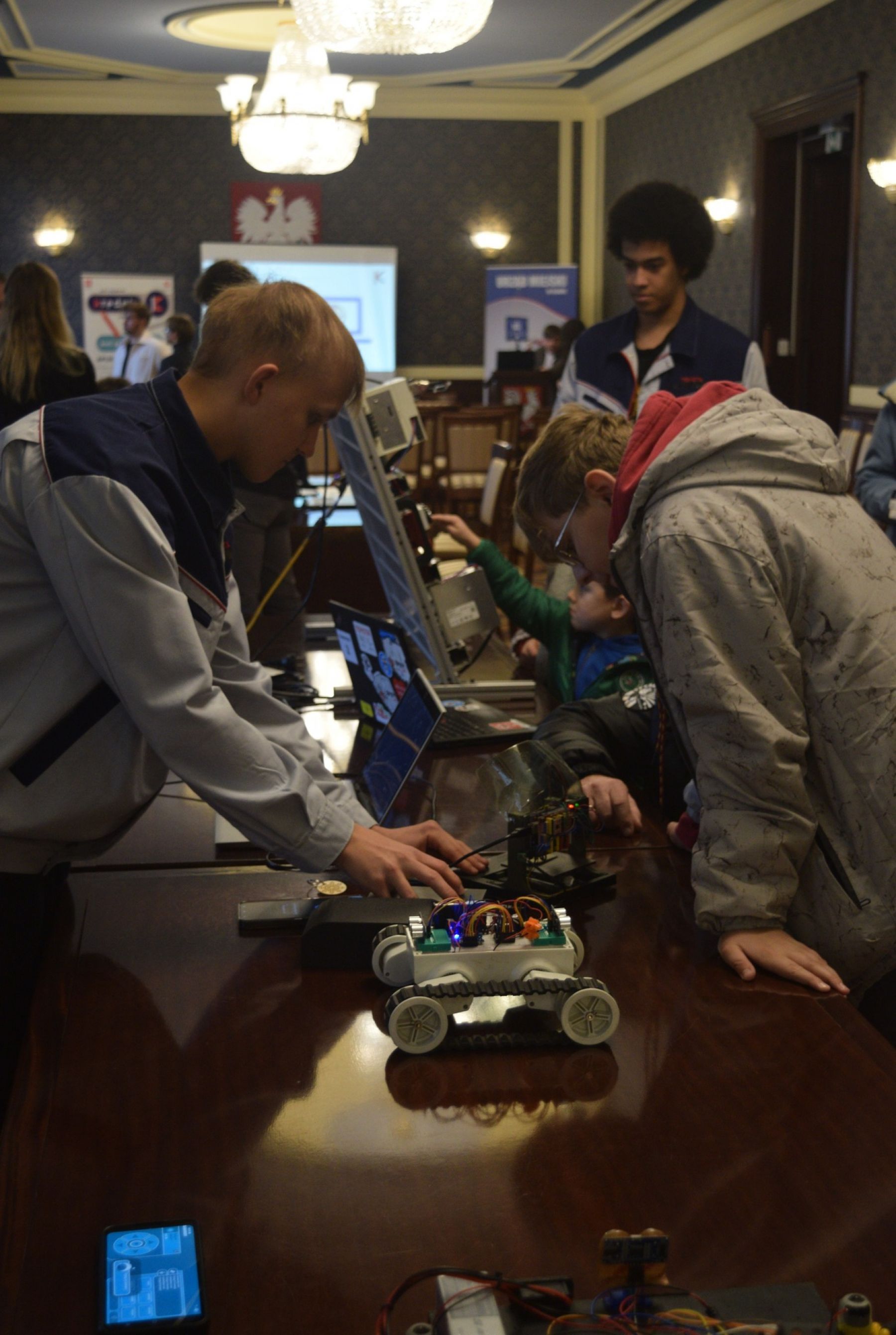 Nasze stanowisko znalazło się w gronie kół naukowych studentów, którzy prezentowali m.in. bolid Formuły 1, projekty związane z tworzeniem aplikacji webowych oraz produkcją gier komputerowych. W tak inspirującym otoczeniu nasi uczniowie przedstawili roboty własnej konstrukcji, wzbudzając duże zainteresowanie odwiedzających.